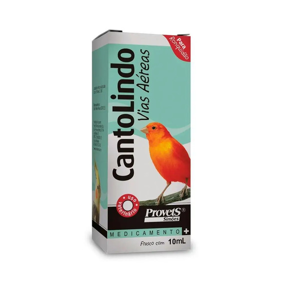 BULA .Canto Lindo - Vias Aéreas .Indicações:Canto Lindo - Vias Aéreas .éindicado no tratamento das afecções bronco-pulmonares (bronquite coriza resfriados laringotraqueites) nas aves em geral inclusive pássaros de gaiola e viveiros. .Fórmula:Cada 100ml de .Canto Lindo - Vias Aéreas contém:Tintura de eucalipto ........................................................................ 300mlTintura de lobélia ............................................................................. 150mlTintura de grindélia ......................................................................... 150mlTintura de guaco q.s.p ..................................................................... 1000ml .Posologia:Pingar no bebedouro a quantidade diária para cada ave.Pequenos pássaros ou crias de aves: administrar de 3 a 5 gotas de .Canto Lindo - Vias Aéreas .por dia. .Pássaros maiores ou aves adultas: administrar de 5 a 10 gotas de .Canto Lindo - Vias Aéreas .por dia.Esta água deve ser renovada diariamente. Repetir o tratamento diariamente atéa cura. .Apresentação do produto Canto Lindo - Vias Aéreas:Frasco conta-gotas contendo 10ml.FóRMULACada 100ml de .Canto Lindo - Vias Aéreas contém:Tintura de eucalipto ........................................................................ 300mlTintura de lobélia ............................................................................. 150mlTintura de grindélia ......................................................................... 150mlTintura de guaco q.s.p ..................................................................... 1000mlSOBRECanto Lindo - Vias Aéreas .éo melhor e mais indicado no tratamento das afecções bronco-pulmonares (bronquite coriza resfriados laringotraqueites) nas aves em geral inclusive pássaros de gaiola e viveiros. Adquira já .Canto Lindo - Vias Aéreas .e tenha sua ave muito mais saudável e feliz!!INDICAçõESCanto Lindo - Vias Aéreas .éindicado no tratamento das afecções bronco-pulmonares (bronquite coriza resfriados laringotraqueites) nas aves em geral inclusive pássaros de gaiola e viveiros.MODO DE USARPingar no bebedouro a quantidade diária para cada ave.Pequenos pássaros ou crias de aves: administrar de 3 a 5 gotas de .Canto Lindo - Vias Aéreas .por dia. .Pássaros maiores ou aves adultas: administrar de 5 a 10 gotas de .Canto Lindo - Vias Aéreas .por dia.Esta água deve ser renovada diariamente. Repetir o tratamento diariamente atéa cura.