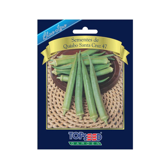 Sementes de Quiabo Santa Cruz 47 Blue Line Topseed GardenO sucesso de uma horta está sempre relacionado com o momento correto do plantio. Sejam ervas vegetais legumes hortaliças ou temperos. Cada planta é diferente das demais em relação ao tipo de solo e temperaturas que prefere para seu desenvolvimento.Antes de você iniciar o plantio procure saber quais plantas são adequadas para cada estação do ano.Existe uma grande variedade de verduras vegetais ervas e temperos que são possíveis de cultivar em casa. Para saber quais seriam as escolhas ideais para você é preciso levar em conta o espaço disponível suas preferências e os cuidados que cada espécie exige.As Sementes de Quiabo Santa Cruz 47 Topseed Garden produzem uma planta alta atingindo 15 metros e com frutos medindo 12 x 2 cm. Se colhido quando pequeno terá gosto e textura mais delicados.Sua germinação se inicia de 5 a 7 dias.Modo de Usar:Escolher bem a área do canteiro preferencialmente terras com alto teor de matéria orgânica.Remova a terra entre 20 e 30 cm de profundidade misturando para cada cova 150g (1/2 copo) de adubo NPK de uma fórmula comercial ou 1 kg (1 litro) de esterco bem curtido ou húmus uma semana antes da semeadura ou do transplante.Irrigar uma vez por dia sem encharcar de preferência no início da manhã ou no final da tarde.Na você encontra as Sementes de Quiabo Santa Cruz 47 Topseed Garden com preço especial.Quantidade média de 14 a 20 sementes por grama. Pacote com 10 g.
